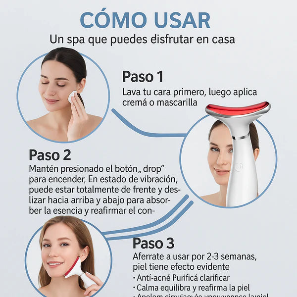 Sí 💆♀️. El masajeador está diseñado con materiales hipoalergénicos y tecnología LED de baja intensidad, segura incluso para pieles sensibles. No causa enrojecimiento ni irritación si se usa correctamente.