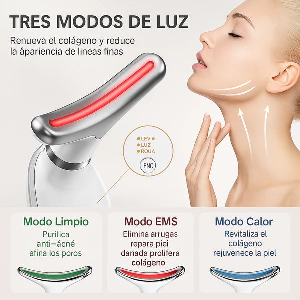 Este dispositivo combina tecnología asiática con funciones avanzadas para ofrecerte un lifting facial y un cuello firme en minutos. Ideal para una belleza minimalista y una piel radiante.
